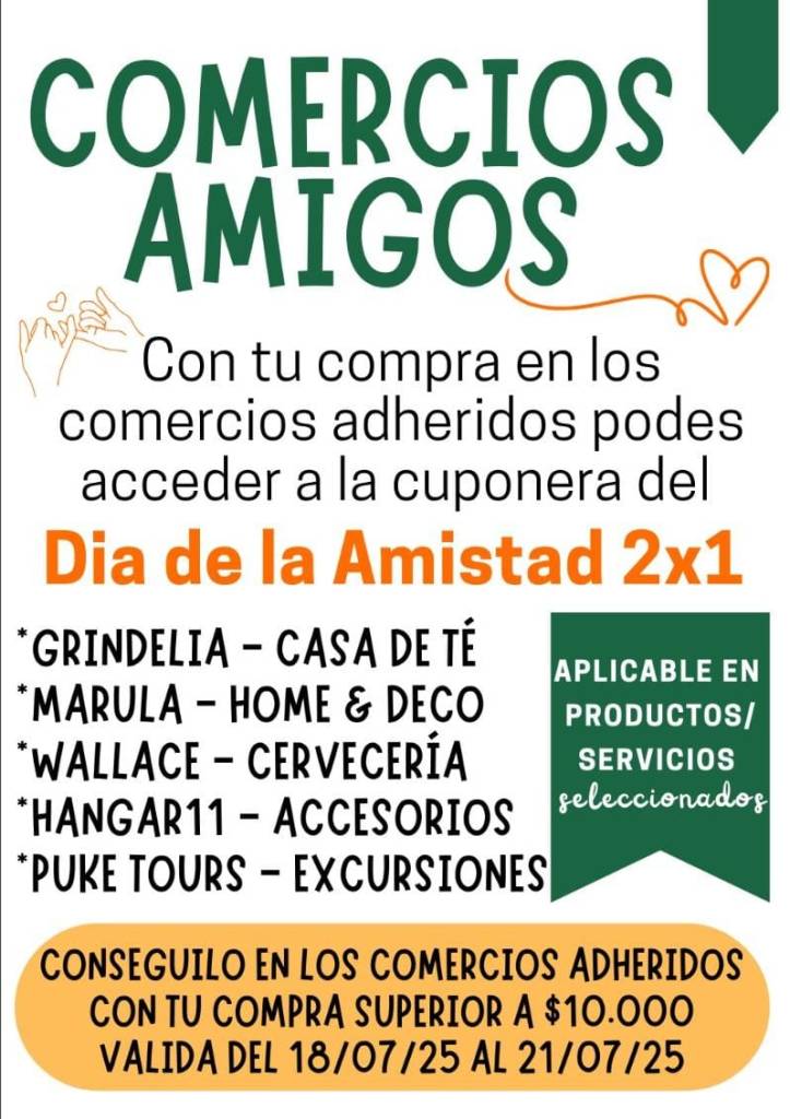 Este día del amigo, con tu compra en los comercios adheridos podes acceder a la cuponera del 2×1 en:
